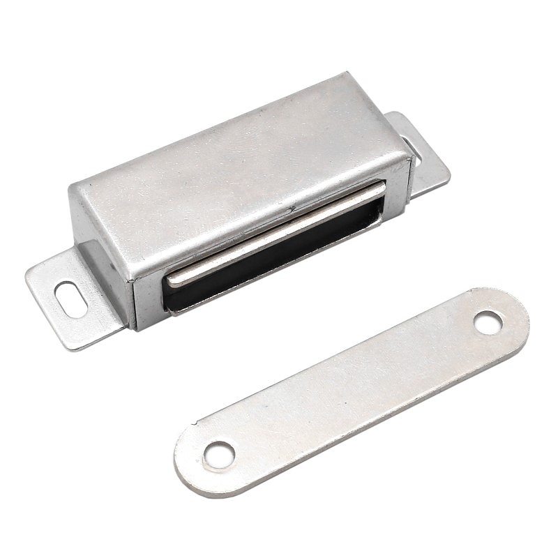 Метална магнитна брава 70х21 неръждаема стомана е солиден монтажен елемент, изработен от издръжлива неръждаема стомана. Снабден е със силен магнит, който осигурява сигурно захващане на вратите на различни видове мебели, като гардероби, кухненски шкафове и плъзгащи се врати. Благодарение на прецизната изработка заключващият механизъм работи гладко и надеждно. Продуктът се сглобява и разглобява лесно, без да е необходимо използването на специализирани инструменти.
