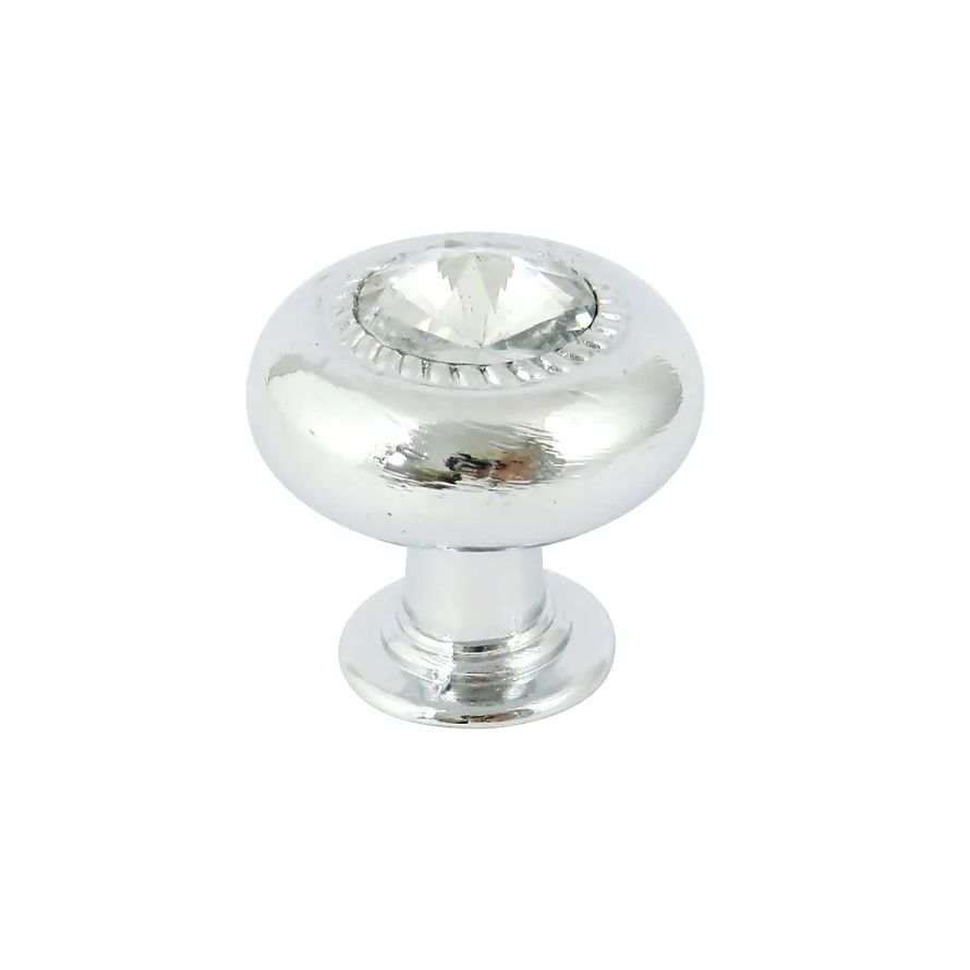 Дръжка за мебели в бляскав стил. Хромиран с кристал в центъра. Изработен от метал. Здрав и удобен за хващане. Перфектен за стилни мебели, шкафове за бижута, нощни шкафчета и др.