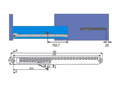 Допълнителен механизъм за плавно прибиране на обикновинни водачи и телескопични водачи.