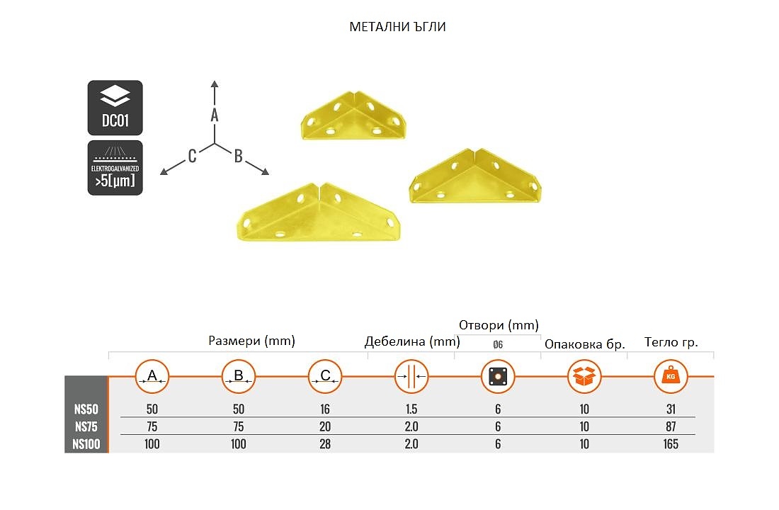 Метален ъгъл за кутии 75x75x20x2.0 ж.цинк