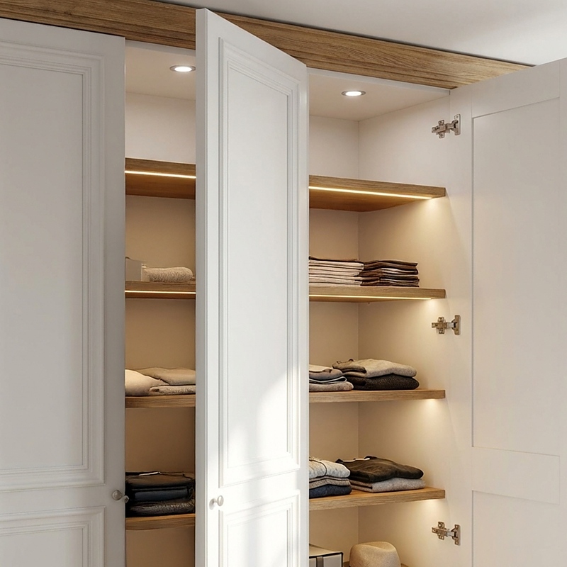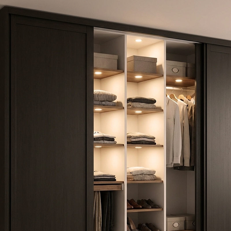 LED осветлението се включва автоматично при отваряне на вратата и се изключва при затваряне , осигурявайки максимално удобство и икономия на енергия.