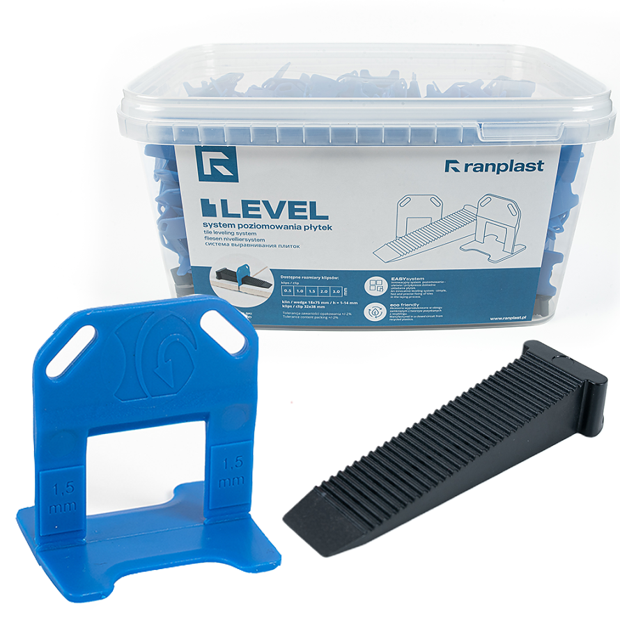 Нивелиращи клипсове 1,5 мм (200) + клин (100) + кофа