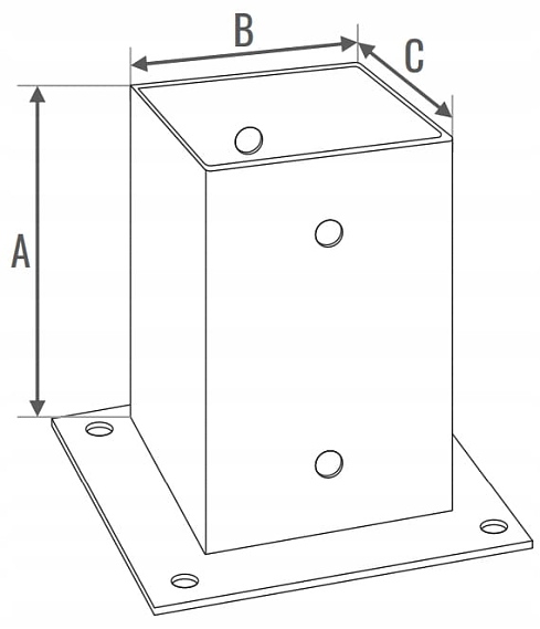 Основата за стълбове с винтове 100x150 мм е проектирана за бързо и сигурно свързване на дървени елементи към бетонни основи с помощта на винтове или бетонни анкери. Интелигентният ѝ дизайн опростява както монтажа, така и демонтажа, което е от решаващо значение за различни строителни и ремонтни проекти. Продуктът отговаря на приложимите стандарти за безопасност, осигурявайки безопасна употреба при всякакви условия.