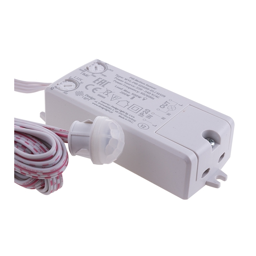 PIR превключвателят включва и изключва осветлението, когато се открие движение в обхвата на детектора, в зависимост от зададеното ниво на интензитет на светлината. Максималното номинално натоварване е 500 W.