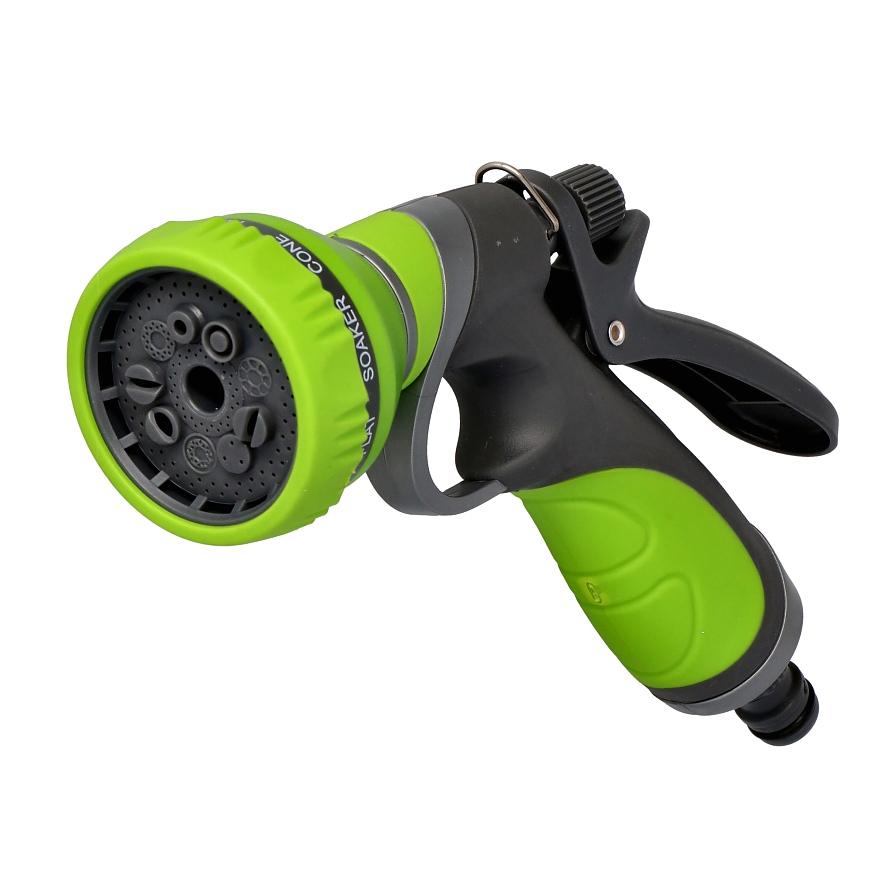 Дюзата има разпръскваща глава, която позволява лесно регулиране между 9 полезни модела на пръскане