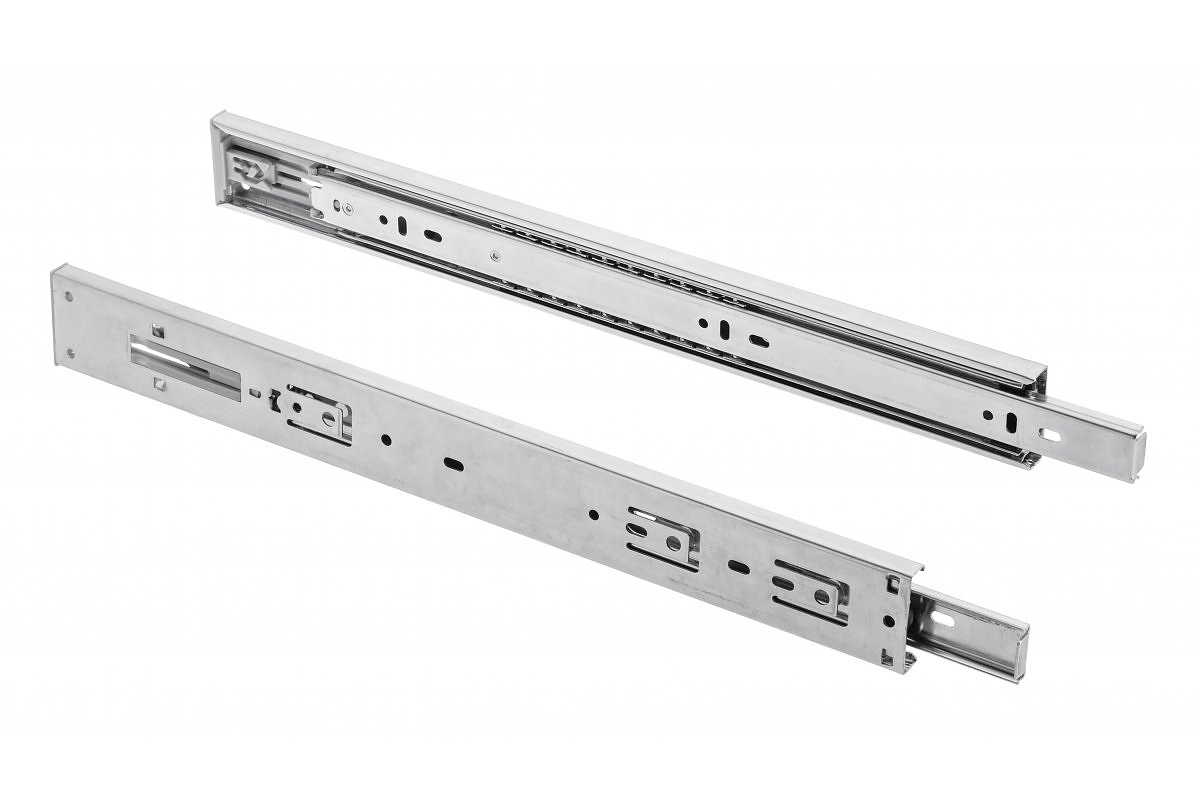 Съчмен водач със PUSH отваряне, изработен от поцинкована стомана за защита от корозия, предлага се в шест варианти. Продуктът ще намери своето универсално приложение за чекмеджета с вдлъбнато и застъпващо лице. Функцията за пълно изтегляне позволява удобен достъп до най-дълбоките места, а безшумното затваряне повишава комфорта при използване. Плъзгачът има и опция за изваждане на чекмеджето от водача. В допълнение, издръжливостта на продукта е сертифицирана за 60 000 цикъла и издържа на натоварване до 25 кг
