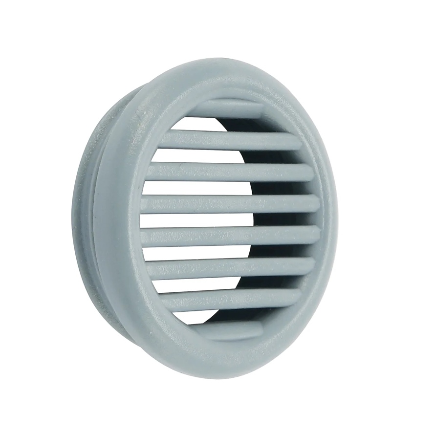 Малка, кръгла вентилационна решетка. Изработена от пластмаса, тя е устойчива на влага. Диаметърът на монтажния отвор е 35 мм , идентичен с фрезования отвор за скрита панта , което намалява броя на необходимите инструменти.