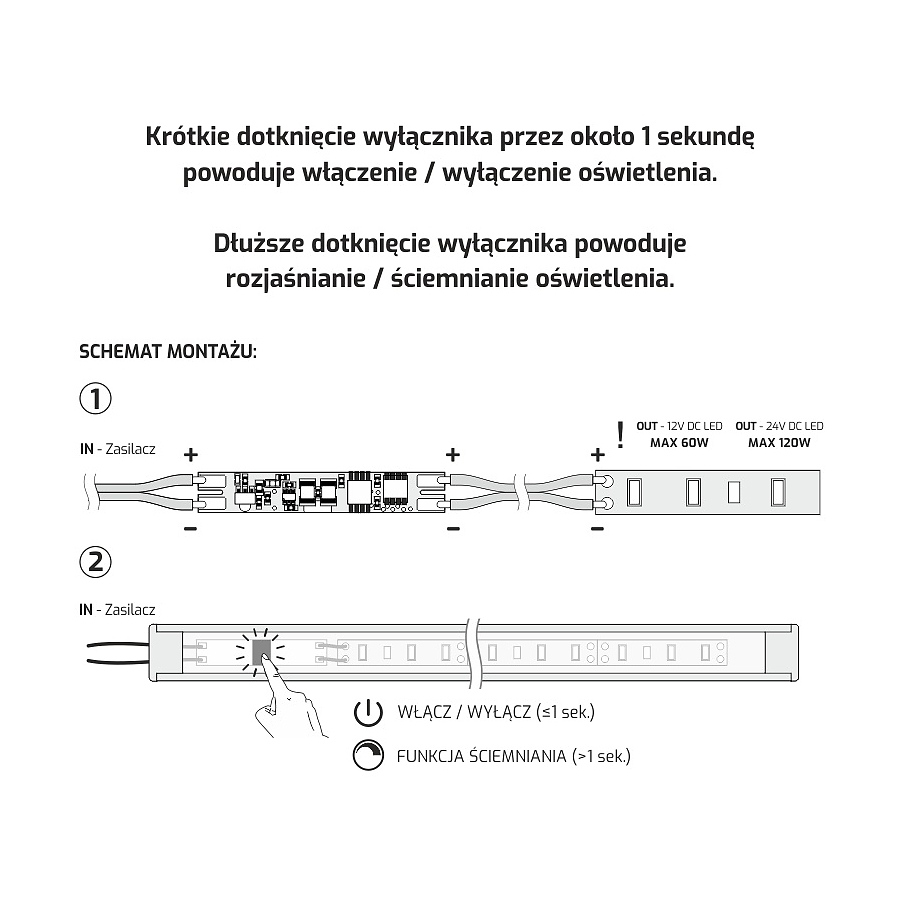 МИНИ ключ SC60 предназначен за включване и изключване на LED ленти монтирани в алуминиеви или пластмасови профили.