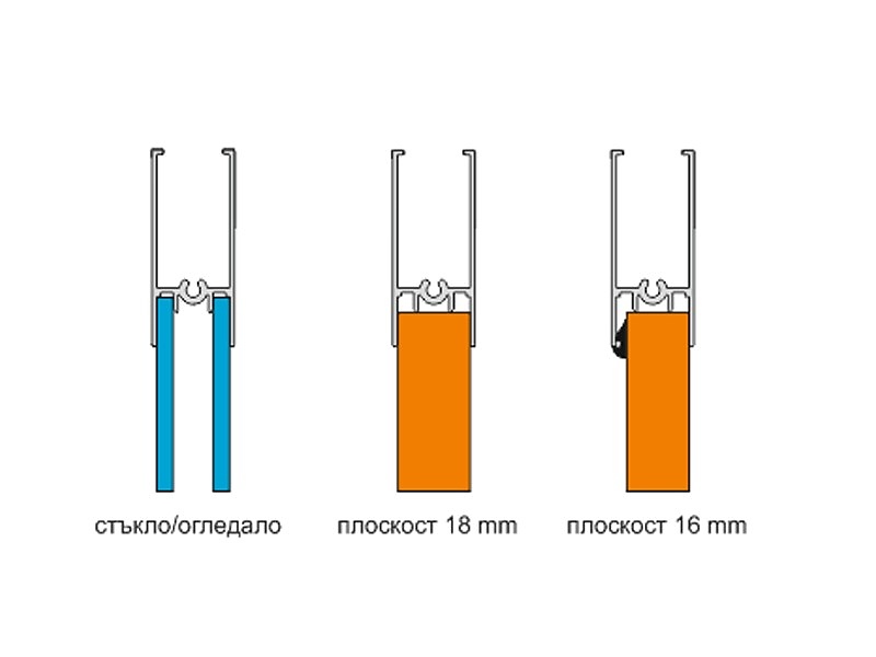 Система за плъзгащи гардеробни врати с долно водене - за стъкло и 18 мм ПДЧ АВЕНТО 22, цвят инокс