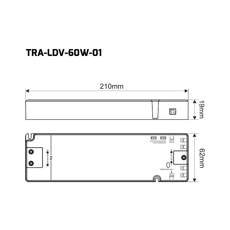 SMART LED DRIVER захранване за LED, 60W, 12V DC с 6 мини гнезда TRA-LDV-60W-01