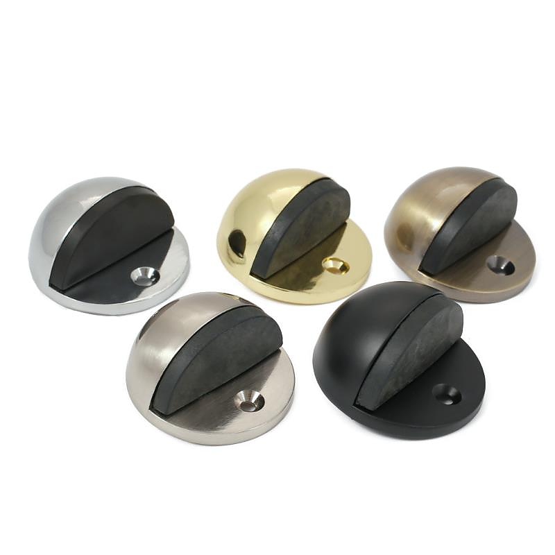Ограничителят за врата SFERA 45x25mm е плътен метално-гумен елемент, който се монтира в пода с помощта на разширителна тапа. Основната му задача е да ограничи отварянето на крилата на вратите и да предпази вратата от изтръгване при течение, затръшване или удар на дръжката на вратата в стената. Бронята е с естетично покритие което й придава елегантен вид.