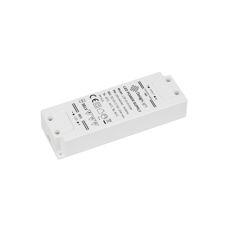 LED захранване 33W STANDARD PLUS е модерно и безопасно захранване, което гарантира правилната и безпроблемна работа на LED осветлението в продължение на много години. Захранва се с променливо напрежение 230V ~ 50 Hz. Той намалява изходното напрежение до 12V DC. Той е затворен в изолиран пластмасов корпус в бяло.