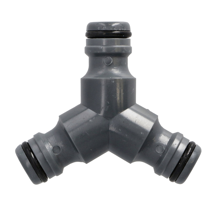 С помощта на тройник е възможно бързо да се раздели водата в отделни градински маркучи с помощта на 1/2" бързи съединители. Съединителят е изработен от здрава ABS пластмаса, гарантираща издръжливостта на конструкцията. Съединителят позволява бързо разширяване на водопровода, което е полезно при големи парцели.